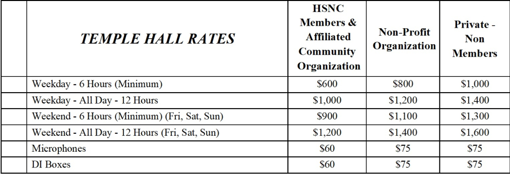 For Facility Reservation inquiries, please check the availability of the facility, review policies and rates published on this page, and then email rental@hsnconline.org. If need to talk to someone, please call in following order. Rental Coordinator: +1 (919) 491-3786 Shiva Raghunanan- +1 (919) 337-3752